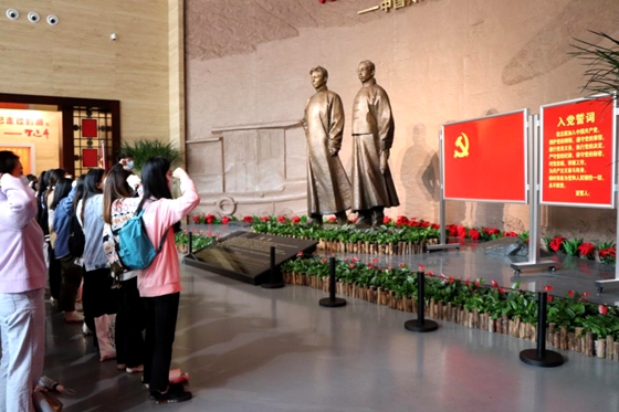 跟随着讲解员的脚步,同学们追溯了中国共产党光辉伟大的历程,从“建党先声”“浴血奋斗”再到“阔步迈进新时代”,一件件实物、一张张图片,都深深触动着在场每一位同学的心,将大家带回到那段难忘的革命历史。100年的党史,记录着中国共产党为人民谋解放、谋幸福、谋复兴的初心和使命,更用铁一般的事实证明,没有共产党就没有我们今天的幸福生活。
