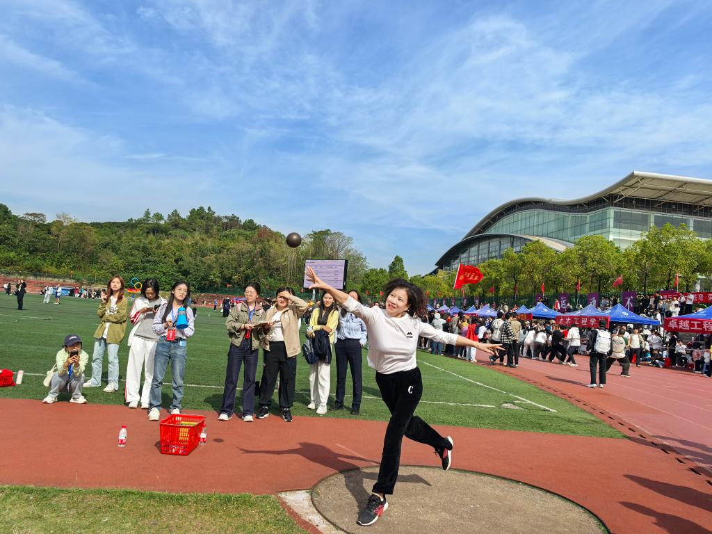 本届运动会共设60个比赛项目,新增了师生拔河、筷运乒乓球等趣味项目,吸引了超过5400名师生运动员同场竞技,参赛人数再创新高。我院胡暇老师获得女子乙组铅球第四名,沈宏老师获得男子乙组飞盘第七名,学院学生组获得“优秀组织奖”。两天的比赛充分展现了同事之间、师生之间的团结协作精神,大家你追我赶,愉快地享受着运动带来的欢乐。