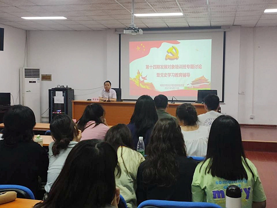 5月11日下午,经济管理系党总支在2教101室召开党史学习交流会。院长赵华,系党总支书记周常国,第14期党员发展对象培训班全体学员以及部分学生党员与会,系党建辅导员田帅主持会议。