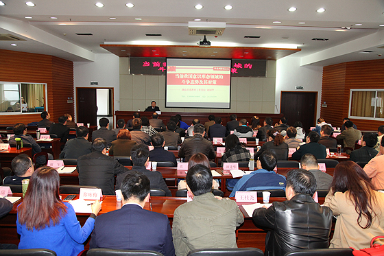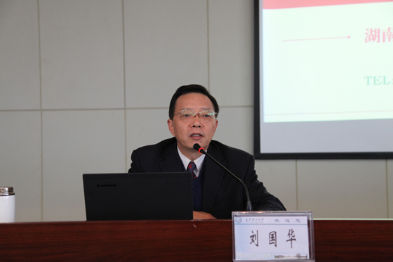 下午,湖南省委教育工委党校副校长、高校干部培训中心党总支书记刘国华教授应邀在william云塘校区一办公楼九楼会议室为“湖南省高等学校第101期处级干部培训班”学员讲授第二课。省委教育工委党校高校干部培训中心教务部主任王青沅及培训班60多名学员参加了听课。