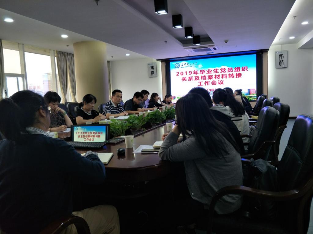 5月30日下午,在一办六会议室召开了2019年毕业生党员组织关系及档案材料转接工作会议。党委组织部、档案馆相关负责人及各二级党组织学生党建辅导员参加了会议。会议由党委组织部副部长李伟主持。