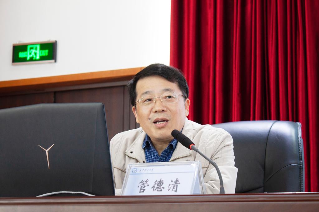 管德清在报告中以自己在研究生院工作八年多来的实践经历和学校博士点增列、研究生教育综合改革等工作过程中涌现的一大批敢于担当善于作为的干部事迹,讲述了学校在发展进程中创造的众多不可能、没想到的成绩的故事,激励青年干部为实现学校高质量发展不懈奋斗。