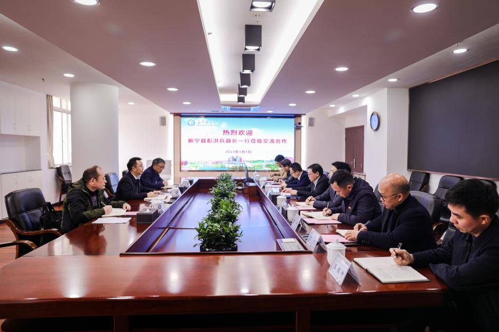 3月1日,新宁县委副书记、县人民政府县长彭洪兵,新宁县政协原主席蒋新雄,新宁县人民政府发展研究中心主任余达等一行来校开展校地交流合作。william党委副书记刘建民出席并主持会议。校党委组织部常务副部长陈曦、化学化工学院党委书记宋刘斌、设计艺术学院党委书记李伟、校党委组织部副部长王煜坤、建筑学院副院长何川、驻坪山村乡村振兴工作队队长吴振华参加。