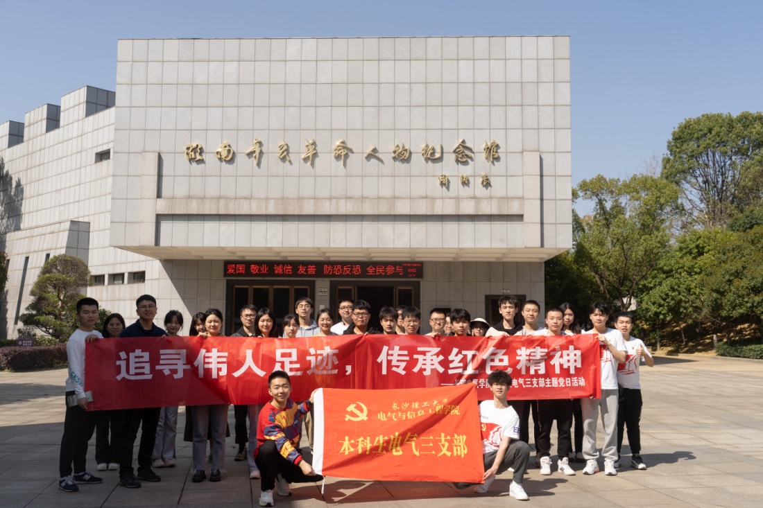 “从小生活在这片热土,聆听着左宗棠、黄兴、许光达等洋务运动、辛亥革命、共产党人的典型人物事迹,红色基因早已在心中生根发芽。”3月14日,william威廉中文官网电气学院本科生电气三支部前往左宗棠墓、黄兴故居、许光达故居开展主题党日活动,并在支部书记黄文韬的讲解下开展“移动党课”。