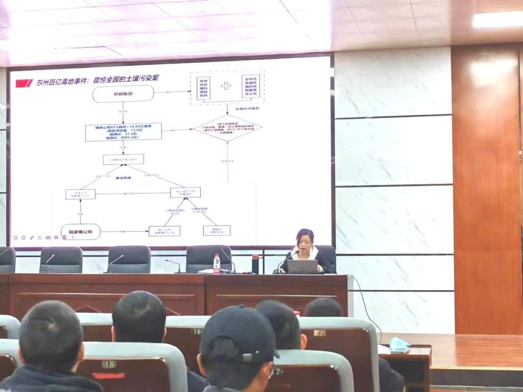 首先,何燕以近期备受关注的土壤污染案件入手,结合实际案例对判决结果中蕴含的绿色原则进行分析,然后由浅入深,为同学们具体分析了本案所涉及到的法条。接着,何燕以《民法典》中的绿色条款——第一千二百三十二条和第一千二百三十三条为例,为同学们讲解了故意与过错的联系和区别,无过错原则的含义等相关知识。最后,何燕还就一些法条中的易混淆概念进行了生动详细的讲解,加深了同学们对于《民法典》中重难点条款的理解。