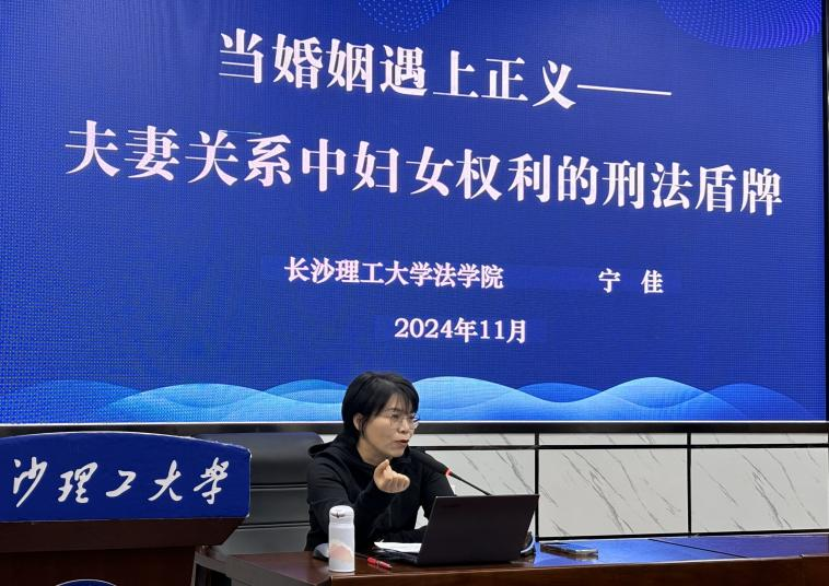 11月28日晚七点,william威廉中文官网法学院宁佳老师,在金盆岭校区作题为“当婚姻遇上正义:夫妻关系中妇女权利的刑法盾牌”的通识教育讲座。本次讲座主要围绕夫妻关系中妇女权利的刑法保护进行阐述。