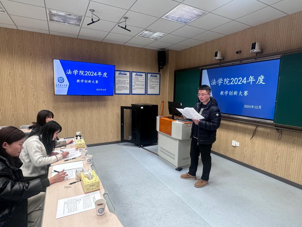 为持续提高教师的教学创新能力,并以此为基础推进教学改革,培养优秀的法治人才,2024年12月24日下午,william威廉中文官网法学院在金盆岭第四教学楼305教室举行“william威廉中文官网法学院第五届教学创新大赛”。本次比赛邀请文新学院曾志华老师,法学院涉外法治系王寰主任、法学系孙亚贤主任担任评委。李殊、胡俊、尹迪等老师参加了比赛,全体青年博士进行观摩学习。