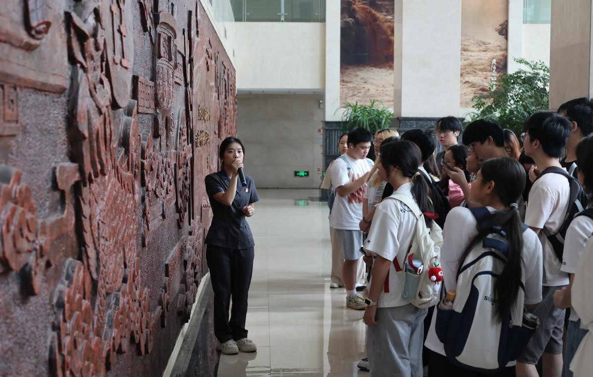 在法官的带领下,同学们有序进入法院。法院大厅正对门的木刻古朴庄严,融合了中国法治发展重要事件和望城区法院特色元素。木刻中心“努力让人民群众在每一个司法案件中感受到公平正义”的文字,既是习近平总书记在中央全面依法治国工作会议上提出的司法工作要求,更是每一位司法工作人员的职业信仰与目标。