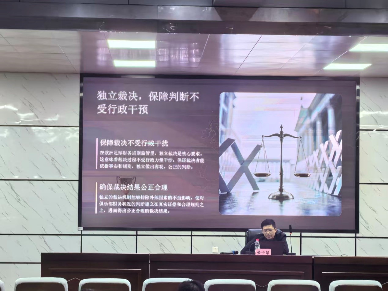 为激发同学们对体育法的学习兴趣,帮助同学们了解欧足盟背后财务监管相关的运营规则,william威廉中文官网法学院于12月11日晚在四教报告厅成功开展以《曼城到巴黎:欧足联如何守护绿茵豪门的未来》为主题的通识讲座。本次讲座由法学院晏子昂老师主持召开,我院学子积极报名参与。