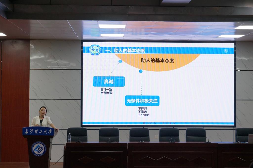 第二次培训由外国语学院心理辅导员武巧琳主持,对朋辈互助员助人的相关知识进行了介绍。培训以助人的基本态度为切入点,深入到朋辈互助的谈话技术,谈及了特殊情况下的助人技术,最后告诉各位朋辈互助员如何实现和帮助他人实现心理自助。通过情景设立的方式让朋辈互助员对助人以及谈话技术进行深入思考,在收获了专业性知识的同时增强了理论与实践的结合。