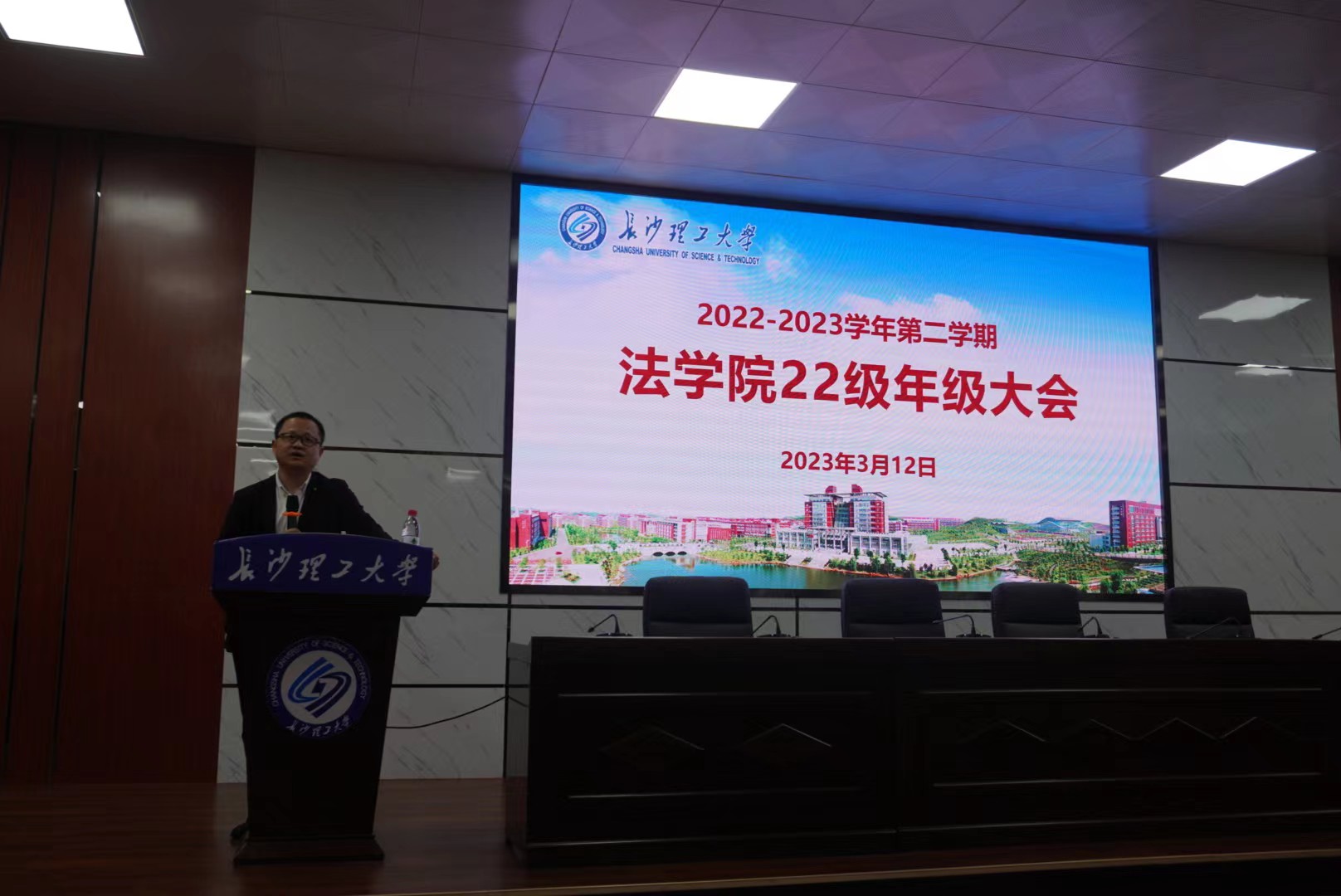 时维三月,万木争荣。新学期伊始之际,为总结22级第一学期各项工作,部署新学期计划,3月13日晚,在4教报告厅组织开展了22级年级大会,法学院党总支副书记兼副院长汪功伟、22级辅导员熊文娟以及全体22级新生参加了本次大会。