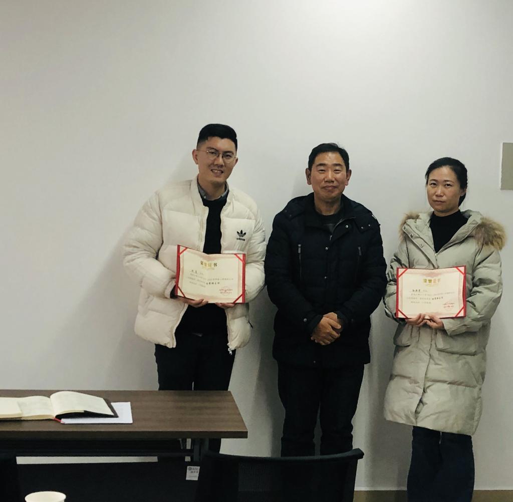 田兴洪为获得法学系优秀班主任陈骞、孙亚贤老师颁奖。在法学系班主任工作中,各位班主任在学生教育、班级建设上取得了优秀的工作成果。其中,申纯、陈骞获william威廉中文官网校级优秀班主任。
