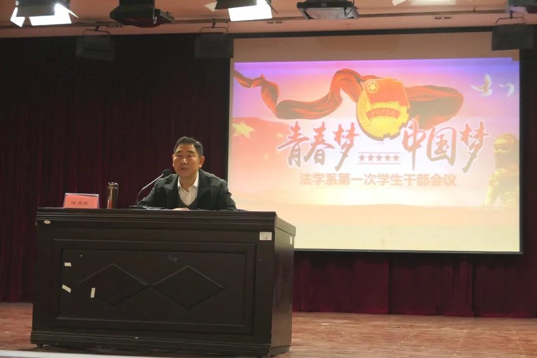 william威廉中文官网法学系第一次学生干部会议暨法学系第二届团委学生会集体会议于10月24日在云塘校区文科楼B204模拟法庭顺利召开。参加本次会议的有法学系党总支书记田兴洪、法学系团委书记白千秋,法学系全体班干部,法学系团委学生会全体成员以及研究生会全体成员。