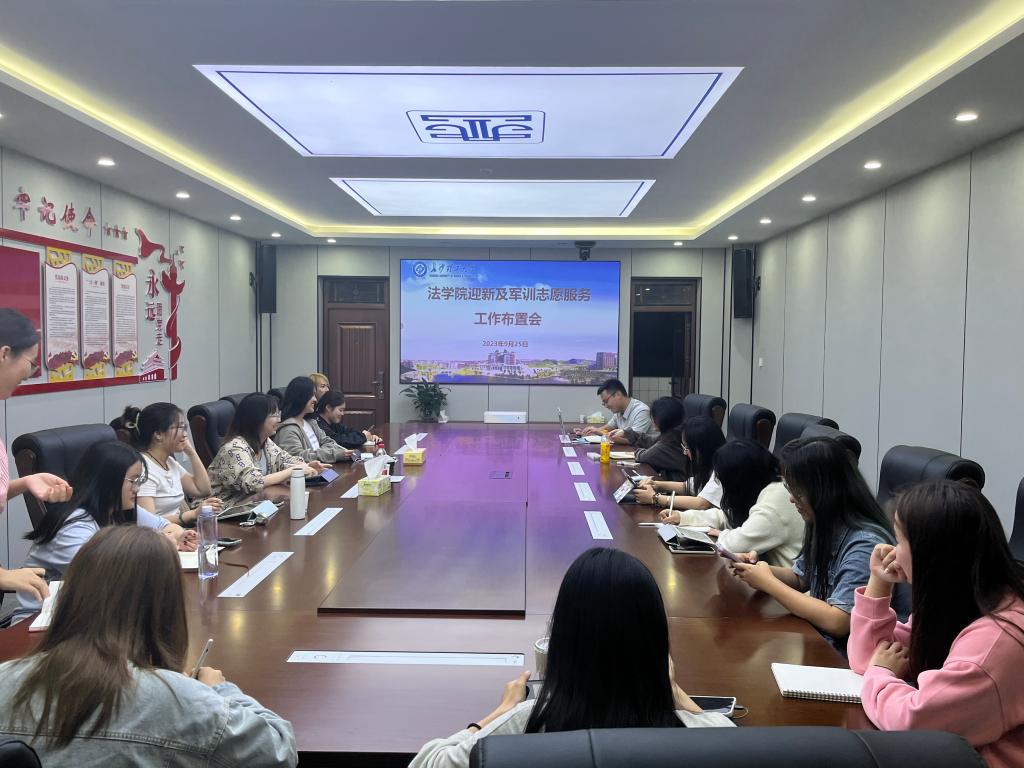 为确保法学院2023年迎新工作顺利进行,学院于9月25日在四号教学楼313举行迎新志愿者培训会。2023级辅导员刘阳老师、学生会主要干部、各志愿小组负责人参会。