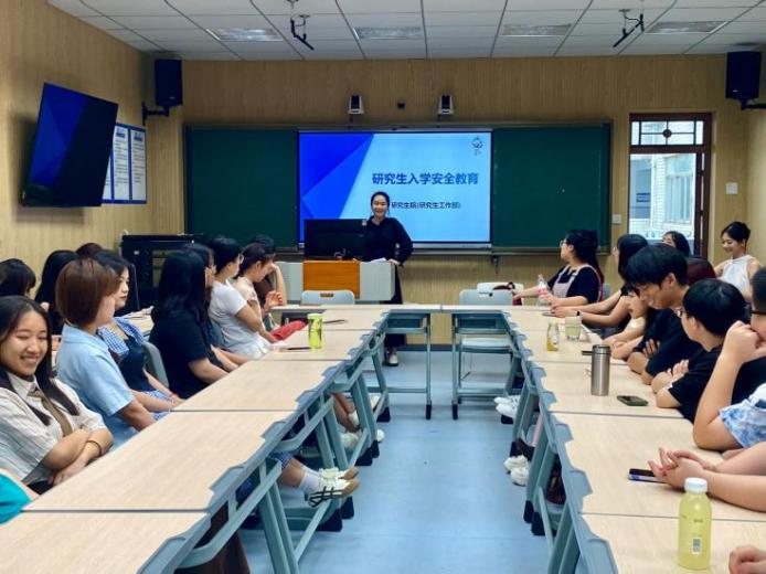 随后,曾宇欣从学术科研、志愿服务、就业实践等方面介绍我院研究生实践教育活动开展情况,鼓励同学们参与学院的发展建设,借助优质平台锻炼自我、主动成长。接着,她从人身、财产、消防、食品和网络安全展开,通过详实的案例分析和实用的应对建议,为新生们上了一堂生动的安全教育课。