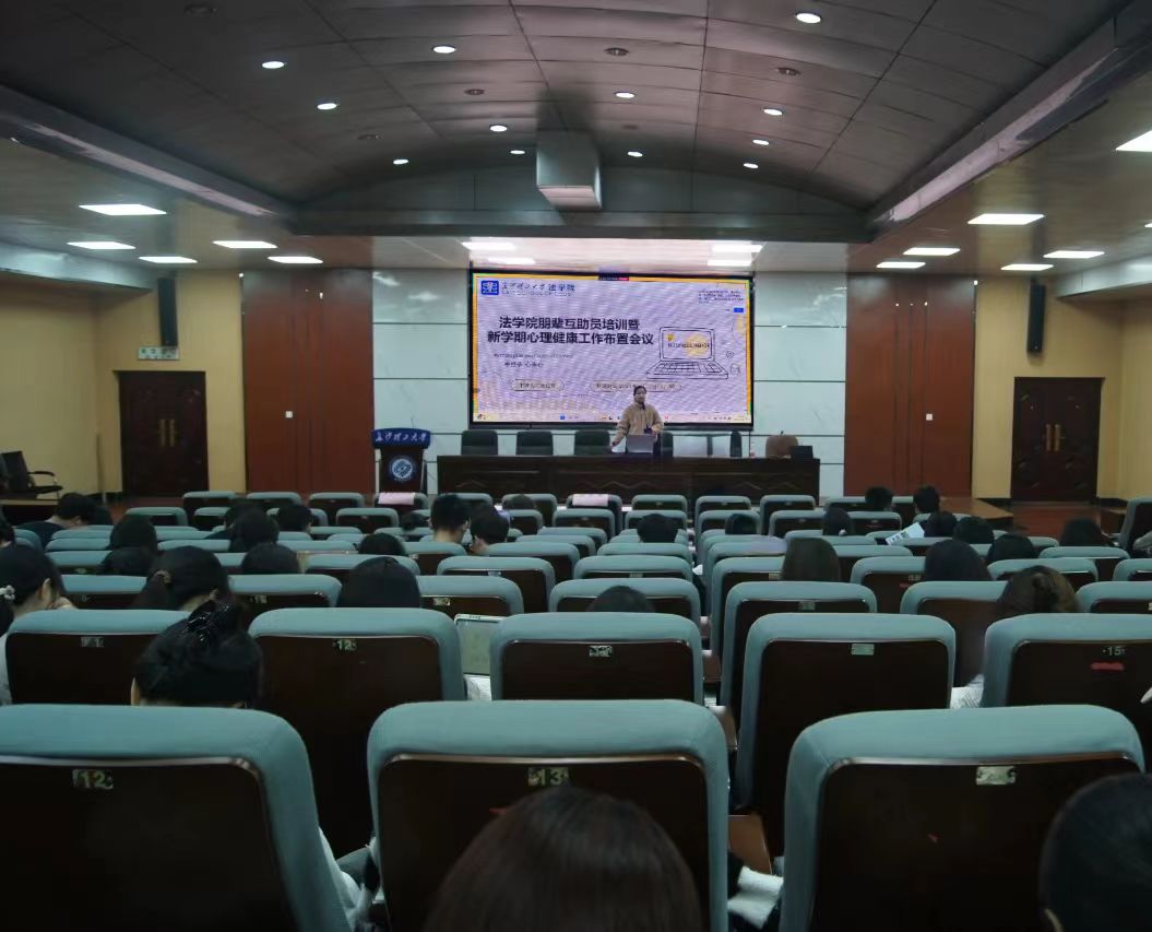 2025年2月25日14点,法学院于四教报告厅召开2025年春季学期朋辈互助员培训暨新学期工作推进会议。本次会议由心理辅导员孙佳乐主讲,全院朋辈互助员参加会议,共同聚焦大学生心理健康议题,部署新学期心理健康护航行动。