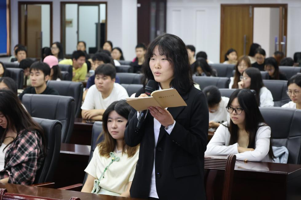 互动交流环节气氛尤为热烈。“法律职业的选择是否看重学历?”“您如何看待如今的律师行业?”“不同职业有什么优势,我们应该如何选择?”一个个问题,既是对法律职业规划的延伸思考,也展现出同学们对法律实践的好奇与探索欲。实务工作者们现场耐心解答,结合自身情况,分享行业经验,为同学们勾勒出法律职业的真实样貌,也让大家对未来的职业方向选择有了更清晰的认知。