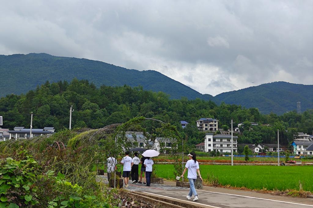 (实践团成员漫步桑植民歌寨)