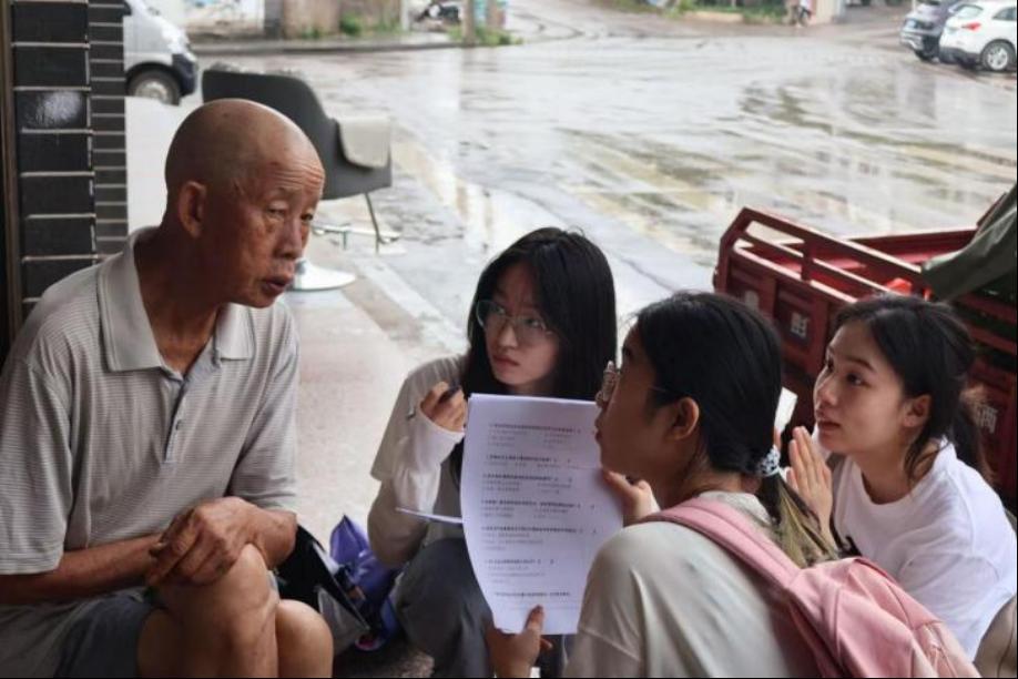 下午,团队分为两组走进王家坡村和长潭村,通过问卷与访谈,与村民面对面交流。队员们不仅记录了村民在秸秆还田、饲料化利用中的实际困难,还化身“政策宣讲员”,用通俗语言解读秸秆禁烧法规和补贴政策。一位老农感慨:“原来秸秆不是废物,是‘黄金’!”——这种从“被动约束”到“主动利用”的观念转变,正是绿色治理的希望所在。