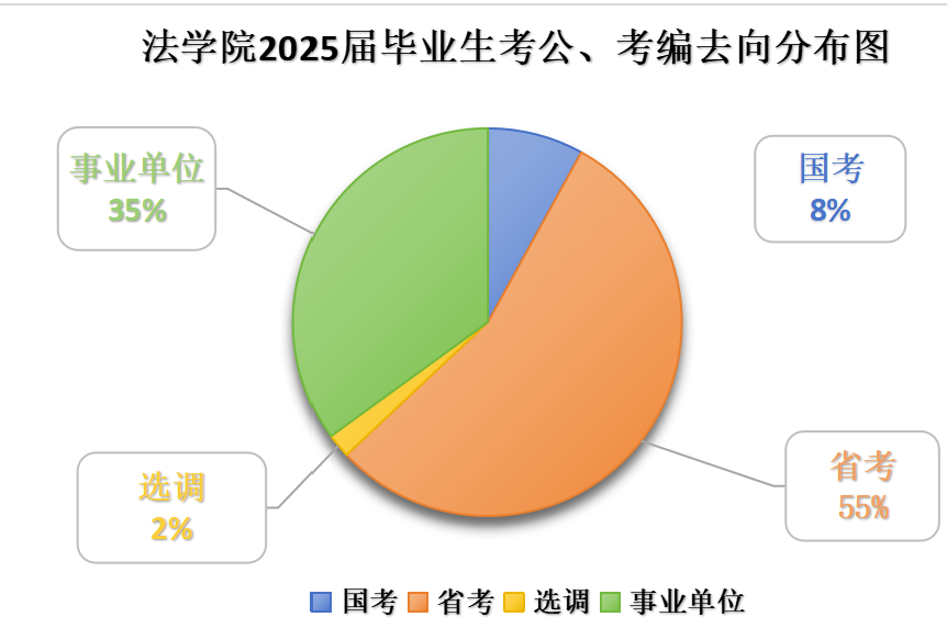 凭着扎实的专业素养和较强的综合能力,法学院2025届毕业生考公考编成绩斐然,成功考取39人,占毕业生总数的28.47%,创历史新高,其中,本科生19人,占本科毕业生总数的22.35%;研究生20人,占研究生毕业生总数的45%。