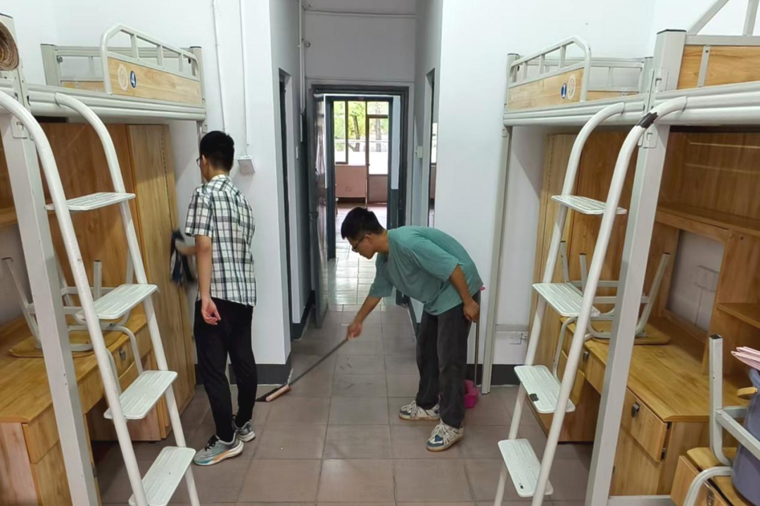 为给2025级新生打造整洁舒适的入学环境,法学院师生提前开展全方位清洁整理工作。大家分工协作,不仅对新生宿舍进行全面清洁消杀,还对法律援助中心的咨询接待区、文件收纳区,以及四教法学院报告厅的座椅、讲台、地面等进行彻底清扫与整理,确保各场所干净整洁。