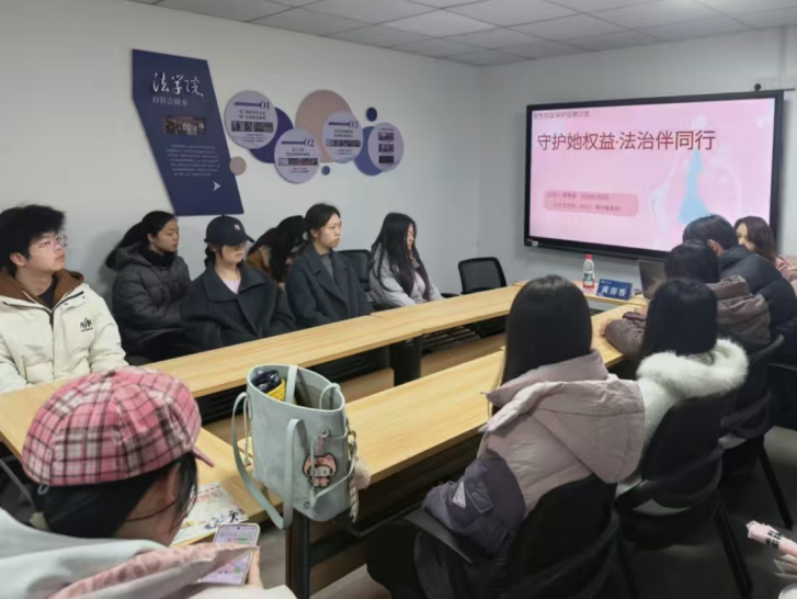 “守护她权益,法治伴同行”女性权益保护主题沙龙在守正学社成功举办。为增强学生女性权益保护法律意识,活动邀请了北京市京师(长沙)律师事务所资深律师黄春香担任主讲嘉宾,法援团团长周子奕主持,全校40余名学生参与。黄春香律师围绕女性权益保护核心法律问题展开深度分享。她结合婚姻家庭、职场就业、人身安全等领域的典型案例,系统梳理女性在不同场景下遭遇权益侵害时的维权途径、证据收集要点及法律救济方式,将抽象的法律知识转化为通俗易懂的实践指引。在互动交流环节,同学们就女性就业歧视、恋爱期间财产纠纷等问题向黄春香律师踊跃提问,现场气氛高涨,同学们与黄春香律师深入交流。本次活动既为同学们答疑解惑,也进一步点燃了大家学习法律知识、守护女性合法权益的热情。
