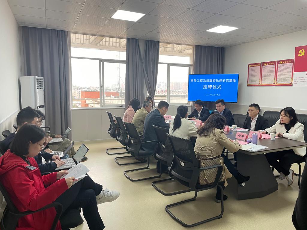 2021年3月18日下午,涉外工程及投融资法律研究基地挂牌仪式在william威廉中文官网云塘校区文科楼C区606举行。建融资产党总支书记、董事长蔡炎宏,湖南省“一带一路”基金公司董事、副总经理曾小雄等一行4人,我院张敏纯副院长(主持工作)、王新生教授、徐莉副教授等老师参加会议,田兴洪书记主持仪式。