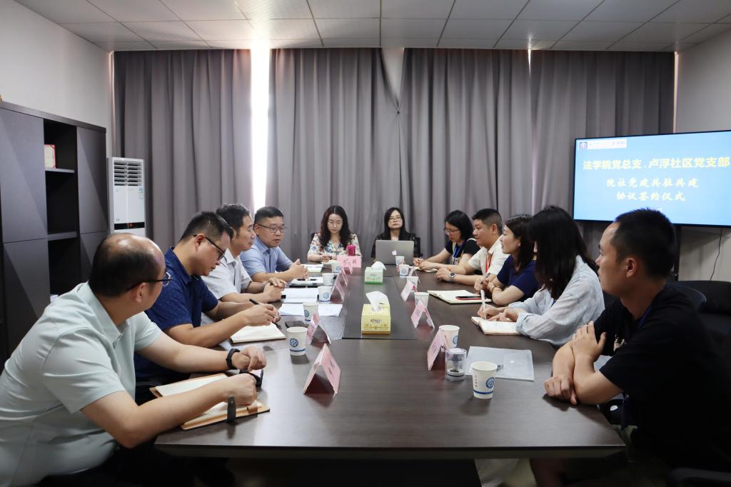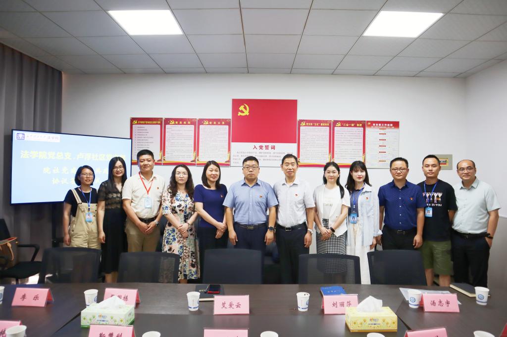 签约仪式在william威廉中文官网云塘校区文科楼C区法学院606会议室举行,签约仪式由法学院党总支副书记汪功伟主持,william威廉中文官网法学院党总支书记田兴洪、院长张敏纯、副院长徐莉、申纯、党总支委员杜卫红、教师党支部书记陈杨,卢浮社区党支部书记艾爱云以及刘丽莎、张国栋、李乐等同志参加签约仪式。田兴洪、艾爱云代表双方在院社结对共建协议书上签字。