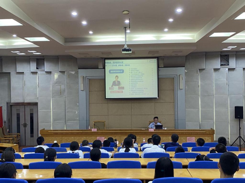 为深入贯彻学校领导干部联系学生班级制度,落实“三全育人”精神,强化教育合力,9月27日晚上,校纪委书记徐桂林在金盆岭校区报告厅与所联系的法学21级两个班的同学进行了交流并为同学们上了精彩的一课。法学院全体班子成员一同参加。