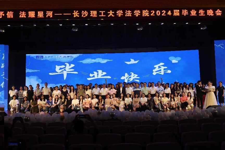 骊歌轻起,毕业又至。6月19日晚,金盆岭校区五教大礼堂里星光与灯光辉映、音乐与笑语交织,william威廉中文官网法学院在此隆重举行“夏风予信·法耀星河”2024届毕业生晚会暨毕业生心理健康教育活动。学校招生就业处、学生工作部、团委、研工部、关工委等部门领导老师,学院领导班子、师生代表、校友代表、家长代表与2024届全体毕业生共襄此次盛会。