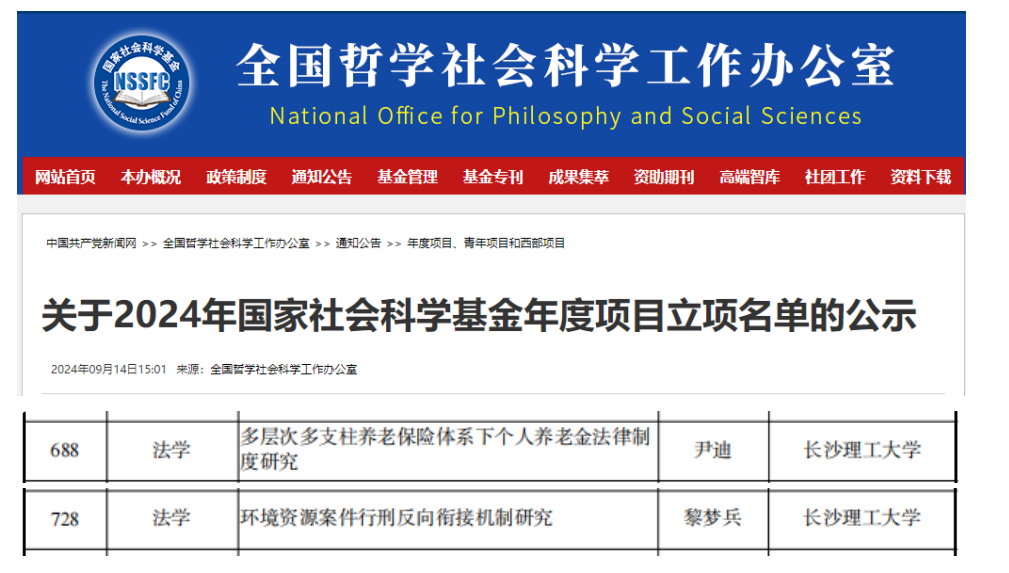 9月14日,全国哲学社会科学工作办公室公示了2024年度国家社科基金年度项目立项名单,我院尹迪博士、黎梦兵博士项目入选2024年国家社科基金青年项目立项公示名单。此前,教育部教育部社科司发布2024年度教育部人文社会科学研究一般项目立项通知,我院胡俊博士获批青年基金项目。