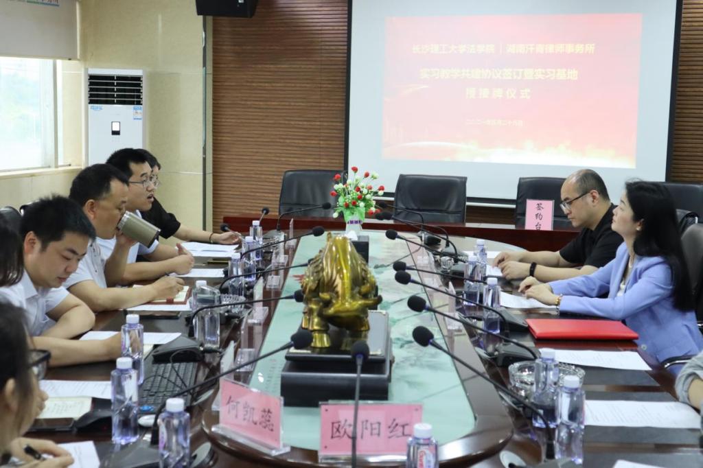 如何让广大法科学子获得来自知名律所令人心动的Offer?金牌律师的职业素养如何在校园里得以前置训练?以工程法为代表的领域法研究如何更好地链接实务......5月28日,william威廉中文官网法学院院长张敏纯率队先后走访权度律师事务所、湖南汗青律师事务所、湖南天地人律师事务所等省内多家知名律所,就校所互联新模式展开讨论,签订《校外实习基地协议书》《“校地合作”大学生社会实践基地意向书》并挂牌实习教学基地、社会实践基地。副院长申纯、就业专干刘阳参与走访与座谈。