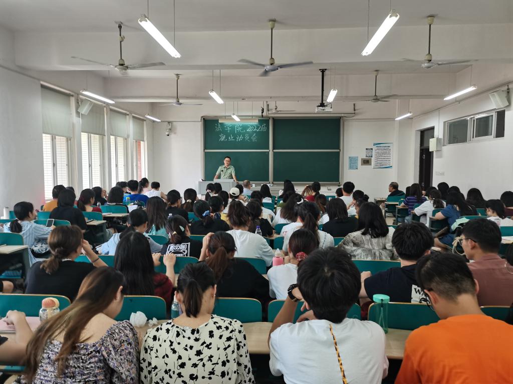 9月9日下午,法学院在文科楼C604举行了2022届毕业生秋季学期就业动员大会。法学院院长张敏纯,党总支副书记汪功伟,副院长申纯,班主任高中权,就业专干刘阳以及全体2022届毕业生参加会议。
