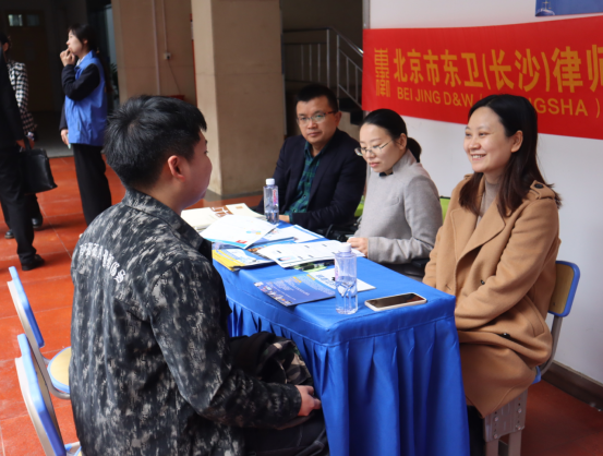 此次律所专场招聘会共有学术报告厅、就业大厅两个会场。报告厅内,湖南启一律师事务所、北京君泽君(长沙)律师事务所、上海汇业(长沙)律师事务所、湖南星河(长沙)律师事务所、上海建纬(长沙)律师事务所等五家律所开展了专场宣讲活动。就业大厅中,同学们有序排队,积极与用人单位就行业发展、单位概况、岗位薪资、发展前景等问题进行交流。过程中,学院党委副书记汪功伟多次向用人单位介绍了学校学院的办学特色与人才培养特质,并洽谈了校企合作育人的有关事项。学院就业专干刘阳积极向单位推荐毕业生,帮助未到场的学生投递简历,并指导毕业生合理确定就业目标,提供就业市场分析及面试技巧辅导。