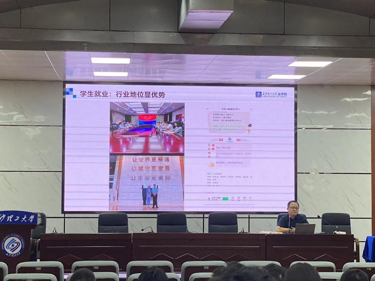 为帮助毕业生及时了解就业形势及相关政策,更好把握“金九银十”的就业机遇,9月4日下午,法学院于金盆岭校区四教报告厅举行了2024届毕业生就业动员会。法学院党总支副书记汪功伟出席会议,2024届毕业生辅导员及全体2024届毕业生到场参会。会议由法学院就业专干刘阳主持。