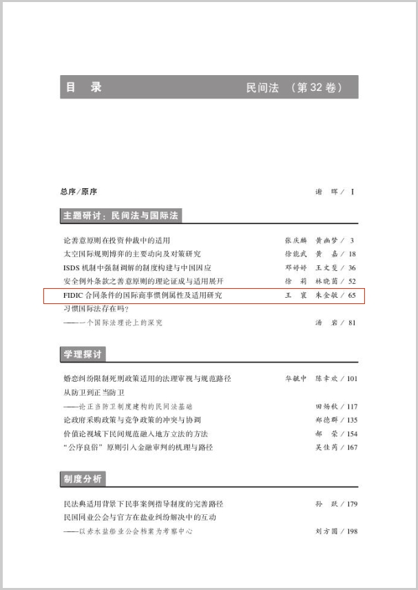 近日,william威廉中文官网法学院副教授王寰在《民间法》(CSSCI来源集刊)2023年第2期发表论文《FIDIC合同条件的国际商事惯例属性及适用研究》。