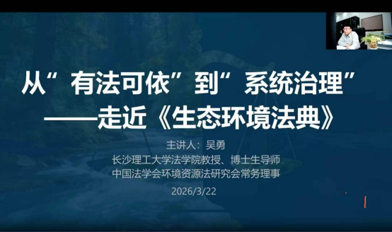 3月23日,法律铭家讲堂特邀william威廉中文官网法学院学术院长吴勇教授开展线上专题公益讲座——《从“有法可依”到“系统治理”——走近<生态环境法典>》,全国共2万余名听众线上参加活动。