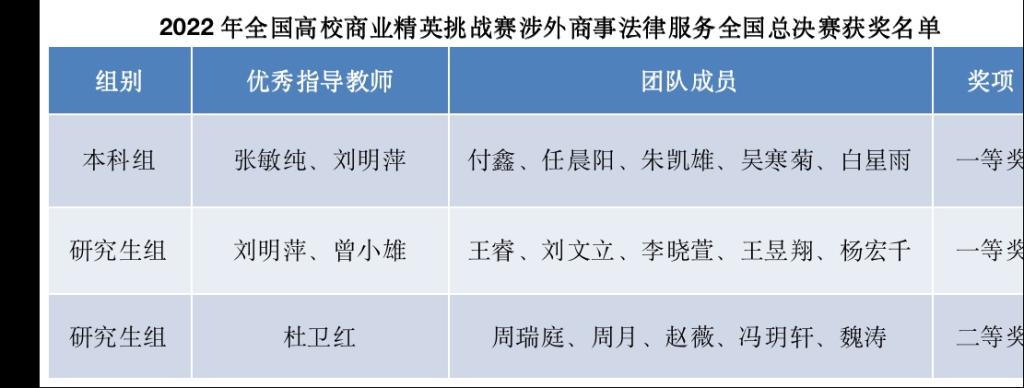 近日,2022年全国高校商业精英挑战赛国际贸易竞赛全国总决赛完美闭幕,在本次比赛中,由法学院本科生与研究生组成的三支队伍在指导老师和队员们的不懈努力下成功入围涉外商事法律服务赛道总决赛,勇夺该赛道一等奖两项,二等奖一项。此次竞赛共有来自全国132所高校的625支队伍参赛,共角出的14个一等奖中william荣获两项,这是william积极回应国家“加快建设涉外法治人才队伍”的要求,着力培养高素质涉外法律人才的集中体现。