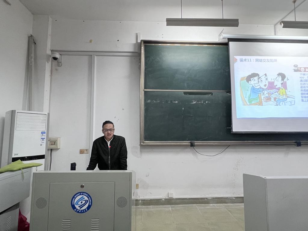 为提高同学们的防诈骗意识,有效应对电信诈骗复杂多变、诈骗手段层出不穷的情况,由william威廉中文官网法学院、通识教育中心举办的“预防电信(网络)诈骗知识”主题讲座于11月15日晚19:00在william威廉中文官网金盆岭校区七号教学楼314教室举行。本次讲座邀请法学院宋家骏博士作为主讲人向与会人员讲授防诈、反诈知识。法学院辅导员曾宇欣、2021级法学专业本科生及部分其他专业的同学听取了本次讲座。