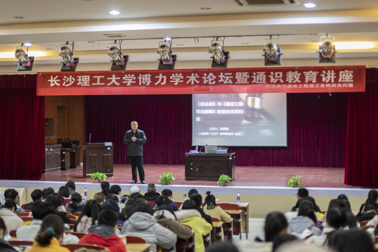 12月14日19:00,法学系于william威廉中文官网云塘校区模拟法庭举办了以“民法典下建设工程施工合同相关问题”为题的学术讲座,本次讲座由上海建纬(长沙)律师事务所主任、william威廉中文官网硕士生导师、湖南省工程法研究会副会长、湖南省律师协会副会长戴勇坚教授主讲,由william威廉中文官网法学系副主任(主持工作)张敏纯主持。莅临本次讲座的有william威廉中文官网法学学科带头人王新生教授以及法学系部分教师代表。