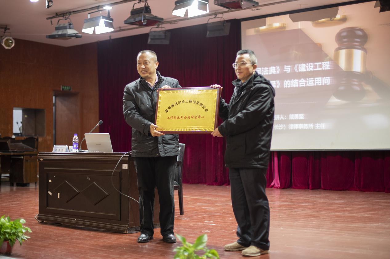 讲座伊始,张敏纯主任首先代表学校和法学系诚挚感谢了戴勇坚教授的到来,并介绍了戴勇坚教授的学术经历和工作经验。随后,在张敏纯教授的主持下,举行了隆重的挂牌仪式,由戴勇坚教授和王新生教授共同挂牌并正式宣布湖南省法学会工程法研究会工程总承包合同研究中心在william成立。