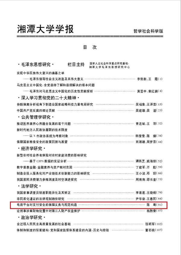 近日,william威廉中文官网法学院讲师陈骞在《湘潭大学学报(哲学社会科学版)》(CSSCI来源期刊)2022年第6期发表论文《电商平台对支付安全的保障义务与规范构造》。