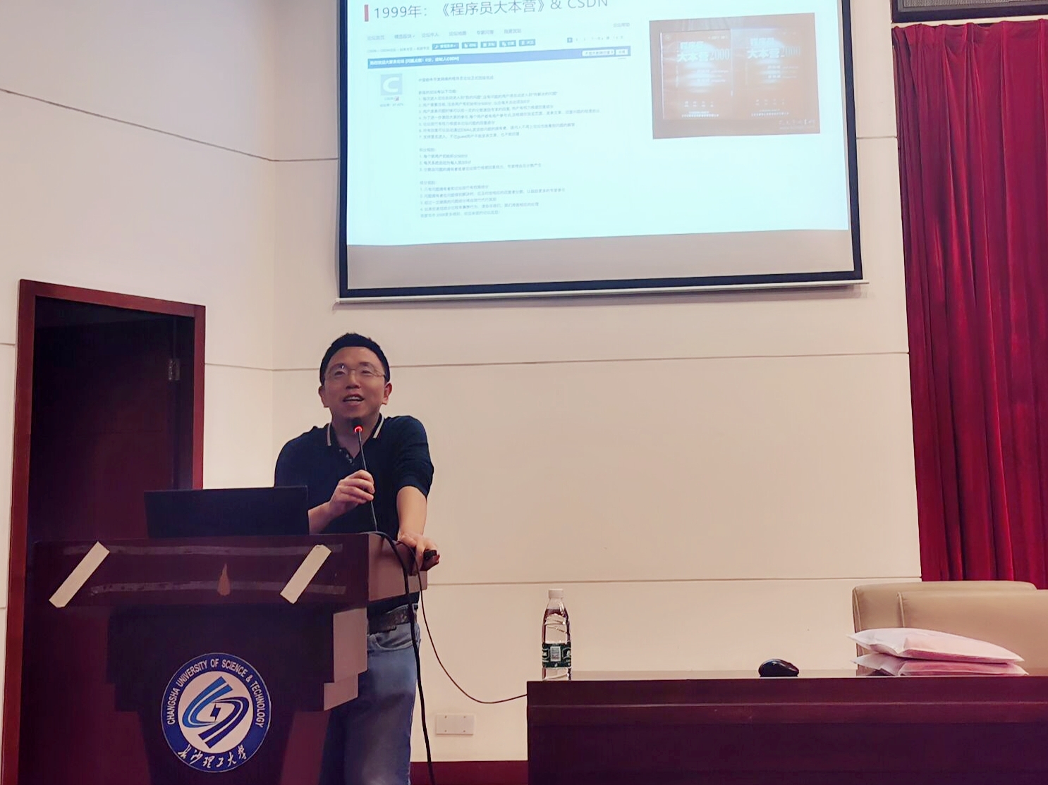 11月5日晚,由创新创业教育学院、计算机与通信工程学院联合举办的创新创业专题报告会在william云塘校区图书馆学术报告厅举行,本期报告会的主题为“中国开发者的黄金十年及我的创业经历”。报告会的主讲嘉宾是CSDN创始人兼董事长、极客帮创投创始合伙人蒋涛。CSDN副总裁李超,以及创新创业教育学院和计算机与通信工程学院有关负责人出席,全校360余名学生参与了此次报告会。