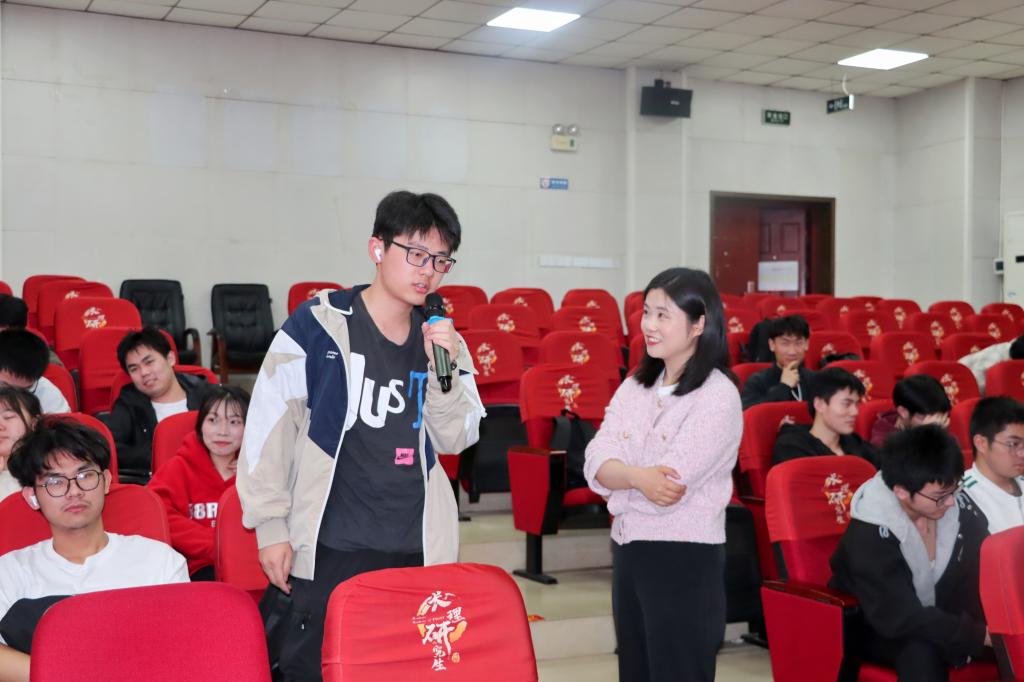 张乾以《如何提升个人核心竞争力》为题,从职业生涯规划、各类院校升学要求及流程、如何提升个人核心竞争力三个方面展开讲述。针对不同的方向,如直接就业、保研考研、海外升学等,张乾分类给予具体的方法指导,强调应注重积累工作经验,主动把握机会。她指出,在本科期间不仅要注重学分绩点等方面,更要关注科研能力等“软实力”的培养。