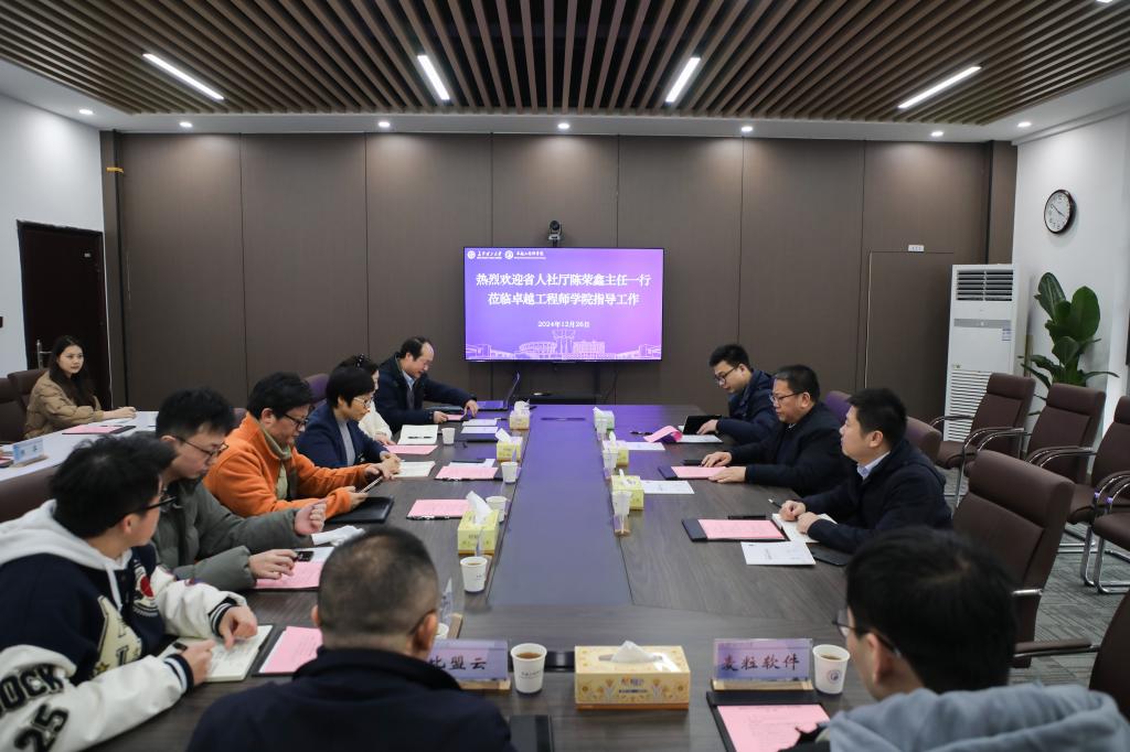 12月26日下午,湖南省人力资源和社会保障厅就业服务中心党委书记、主任陈荣鑫、创业服务部部长毛彪、创业服务部二级主任科员胡川一行组成调研组来到william,就大学生创业孵化基地进行实地调研。校党委书记付宏渊陪同调研。湘江卓越工程师学院负责人参加调研和座谈。