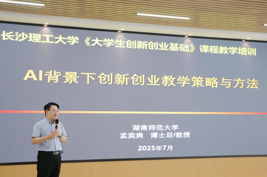 湖南师范大学孟弈爽教授首先围绕“AI背景下创新创业教学策略与方法”这一主题,从AI技术的推陈出新到各教学环节的数字平台、数字工具和数字资源的应用进行了深入的讲解。孟教授的讲座为我们打开了一个新的视角,帮助william教师更好地理解和应用AI技术在教学中的最新发展。