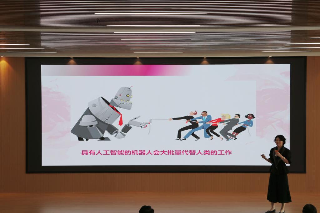 中国传媒大学设计思维学院院长税琳琳从设计思维教育的核心要素、设计思维在中国传媒大学的实践、设计思维课程创新与实践等几个方面进行报告。税院长在报告中以许多生动案例阐述设计思维教育的理论、方法和实践路径,报告生动活泼,取得良好效果。