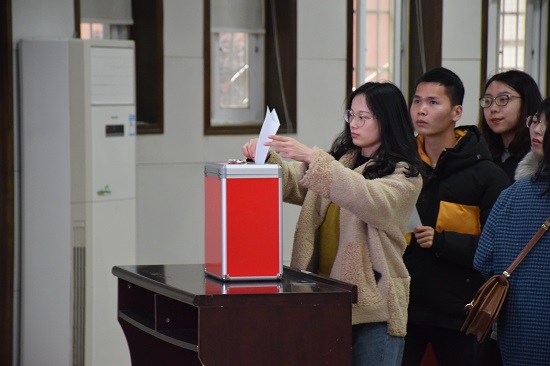 选举之前,汪功伟通读了《外国语学院学院党代表选举办法(草案)》、黄坚宣读了候选人预备人选名单、冯春宣读了监票人计票人名单。段胜峰说明了准备会议阶段,学院严格执行“三上三下”的基本原则,由各个党支部推荐提名,提出推荐人选初步名单上报学院,学院提出推荐人建议名单,发到党总支部征求意见,第二步,学院党委将推荐人上报至学校,征求学校意见,有了前期的良好基础,使得本次大会顺利召开,学院秉承严格履行党章,认真贯彻执行民主集中制,把充分发扬党内民主、坚持走群众路线贯彻于选举当中,代表的选举采取自上而下、上下结合、反复酝酿、逐级遴选的办法进行。最终在会议前拟定候选人有9名(其中包括一名学生党员)差额选举。会议对候选人进行介绍,要求各位党员代表,本着认真负责的态度来填写选票,用好选举权,确保选举工作的严肃性和有效性,以保证学院出席学校党代表大会选举工作顺利进行。