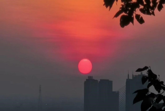 登上山顶后,队员们在凉亭稍作休整,便迅速前往最佳观日点,静静等待那一抹东方红的出现。要出来了!随着队员郑豪杰的一句提醒,刚刚泛白的天际犹缓缓走出的琵琶女,脸庞中透露出一抹羞涩红,山间寺庙的钟声和早起觅食鸟儿的声音也共同谱成了应景的“琵琶曲”,分外迷人。慢慢地,这一抹红揭开面纱,露出圆润的脑袋,散发着耀眼的光芒,盘桓于山峦之间,映射在江面之上,将恩泽遍散于大地。清风徐来,实践队员们望着这绝美的日出江山图,纷纷拿出手机记录这美好的霎那,迎接清晨的第一抹东方红