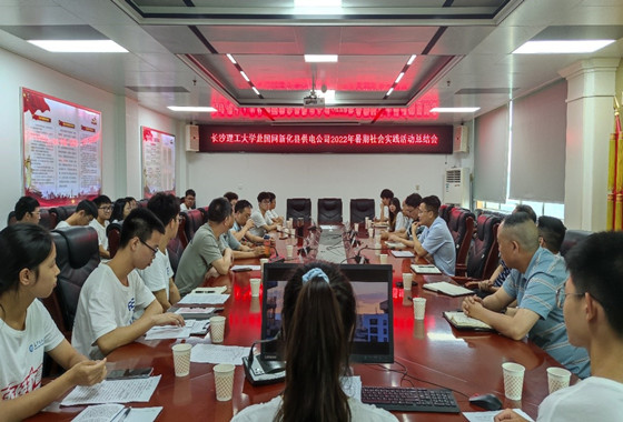 7月20日上午,电气学院赴国网新化县供电公司实践队在九楼会议室召开总结会议。国网新化县供电公司党委书记杨晓雄、营销部主任何樱、人资部主任罗磊、党建部主任李锦峰、配电部副主任伍海斌、发展部副主任胡泽忠、党建工作部副主任张叔保、团支部书记刘竞,william威廉中文官网电气学院副院长马瑞、党委副书记陈仁凯、关工委常务副主任罗玉雄、实践队带队老师吴文斌和全体实践队员一同参会。会议由吴文斌主持。